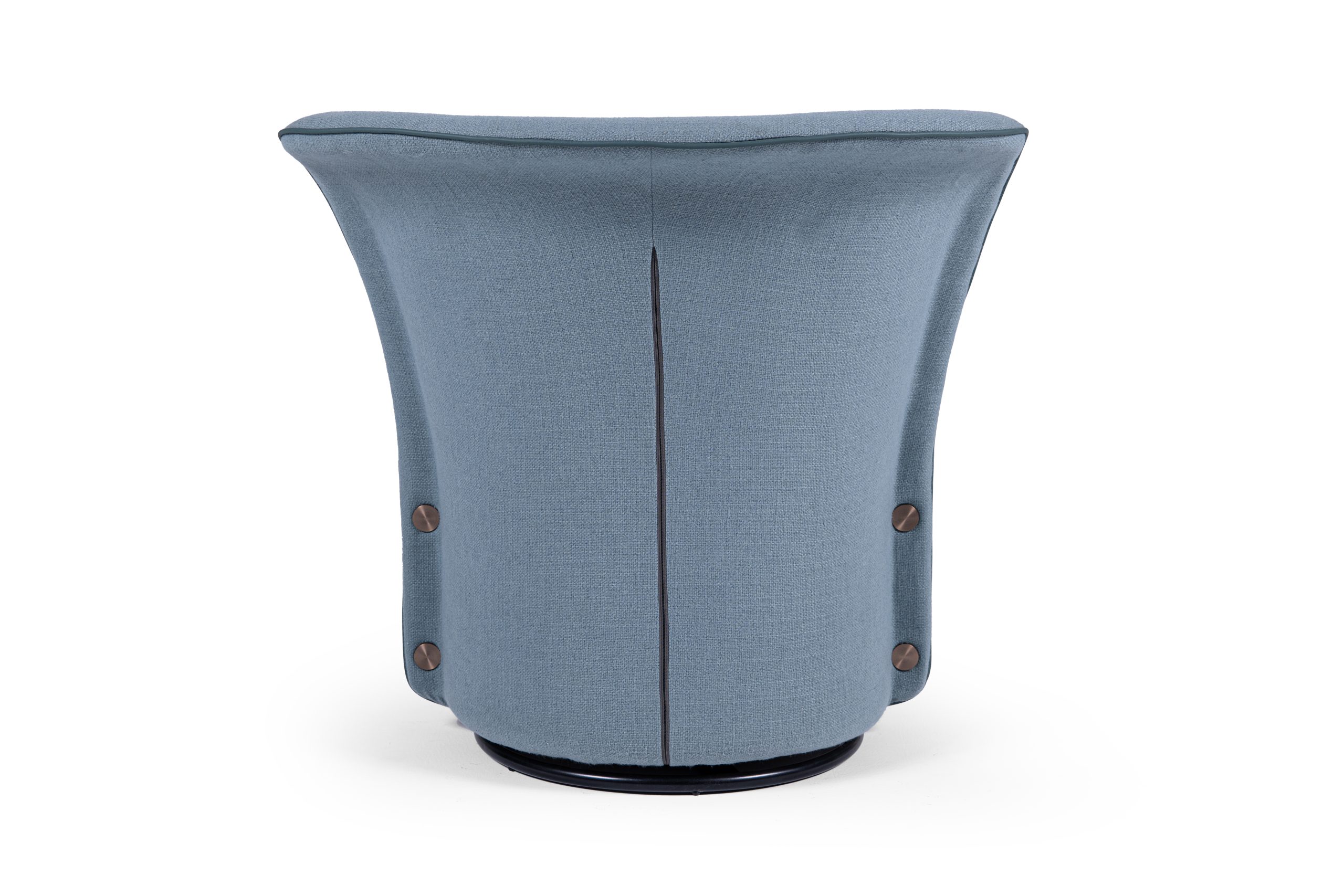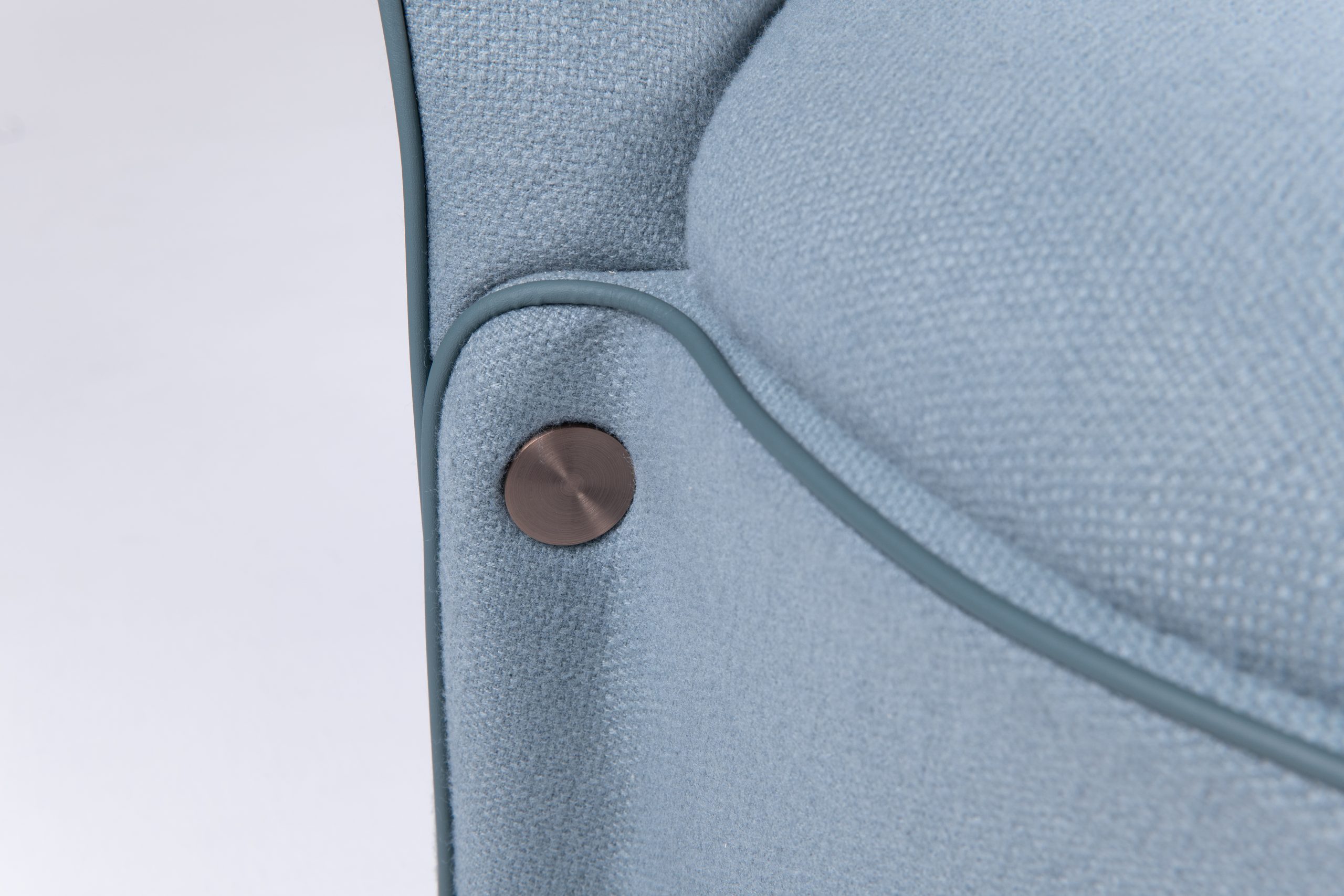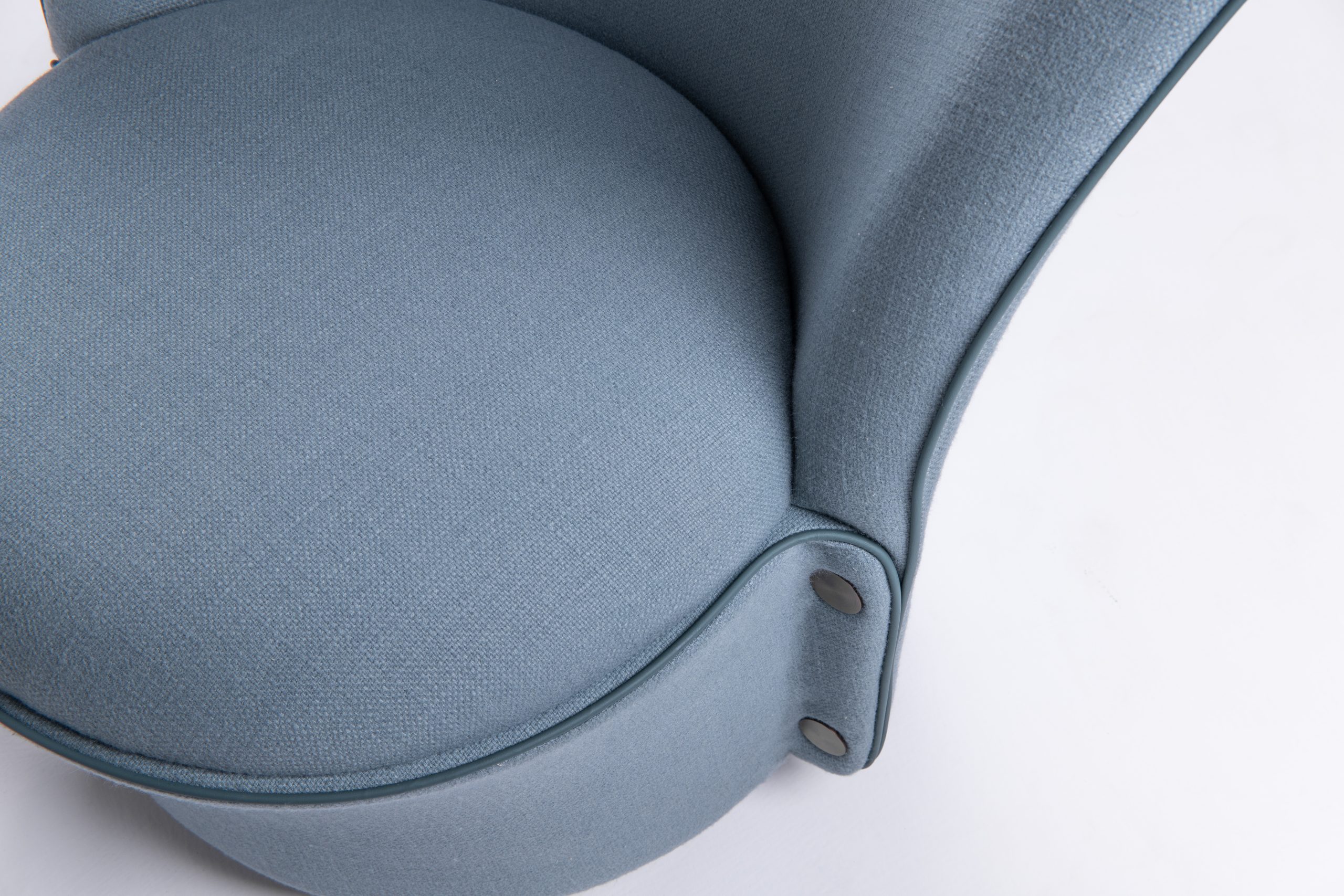 This leisure chair is a creative fusion of retro elegance and modern functionality. It is made of high-quality light blue linen fabric, whose natural texture and soft tone convey a tranquil and elegant atmosphere, while also featuring good breathability and durability.