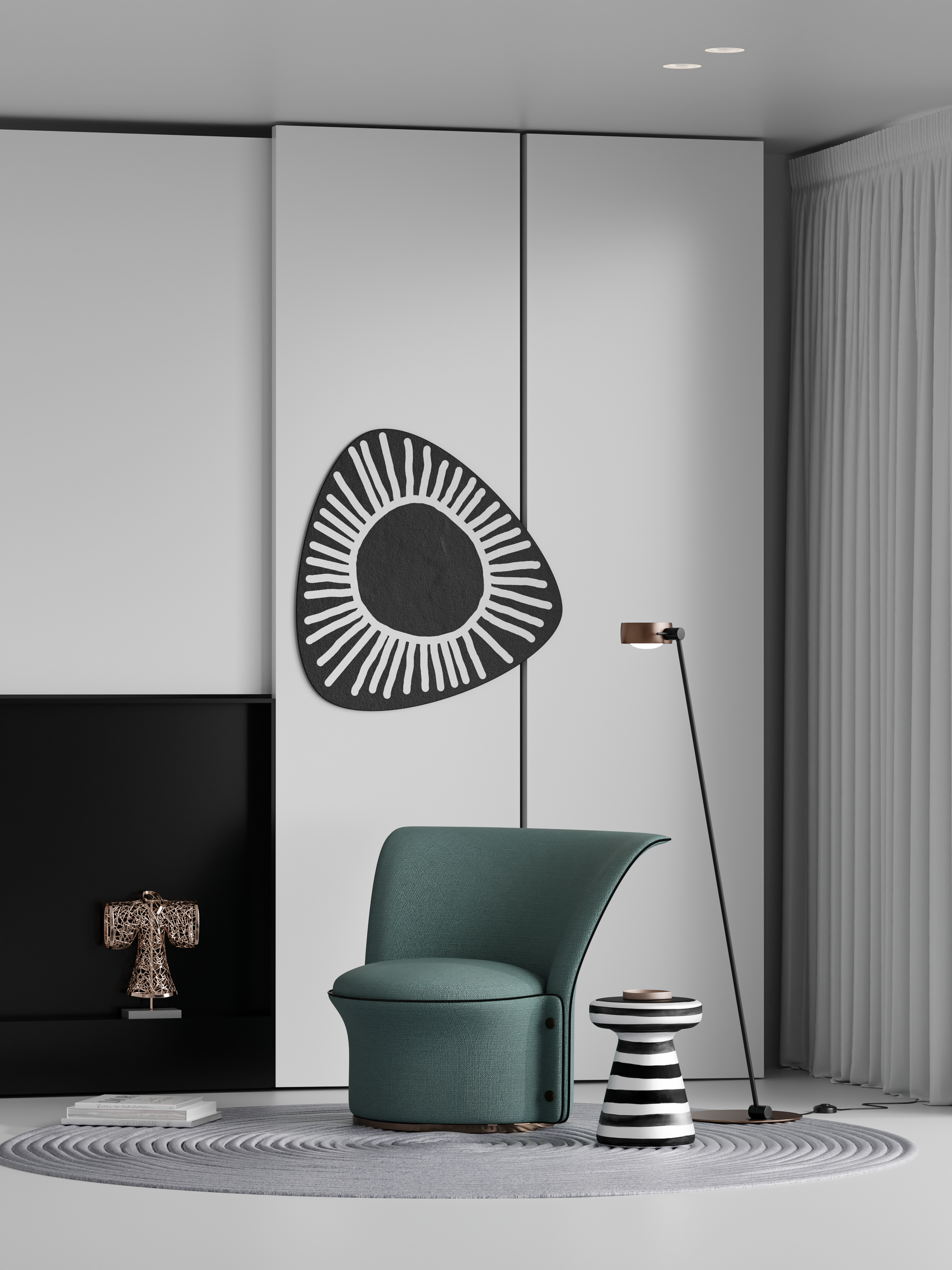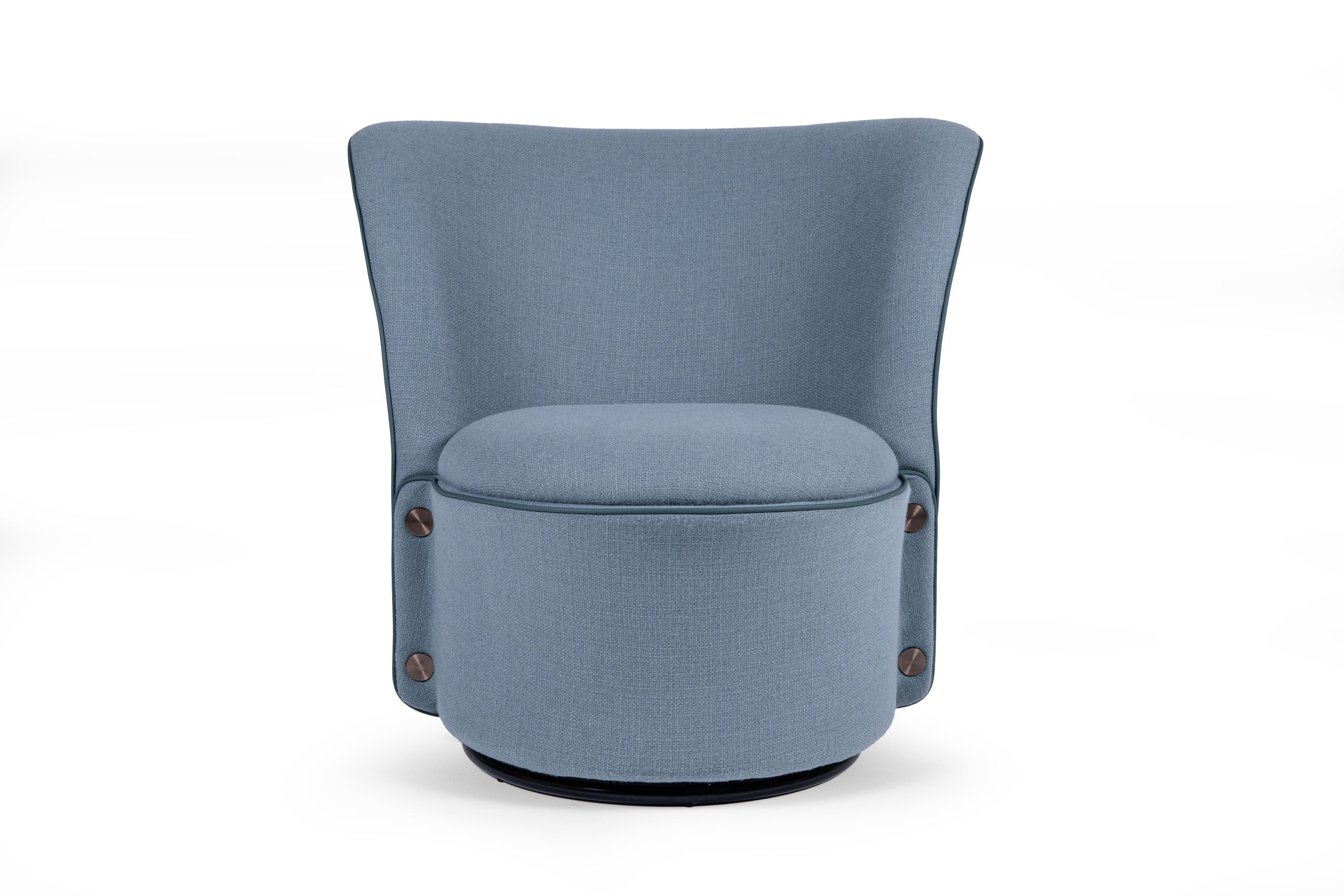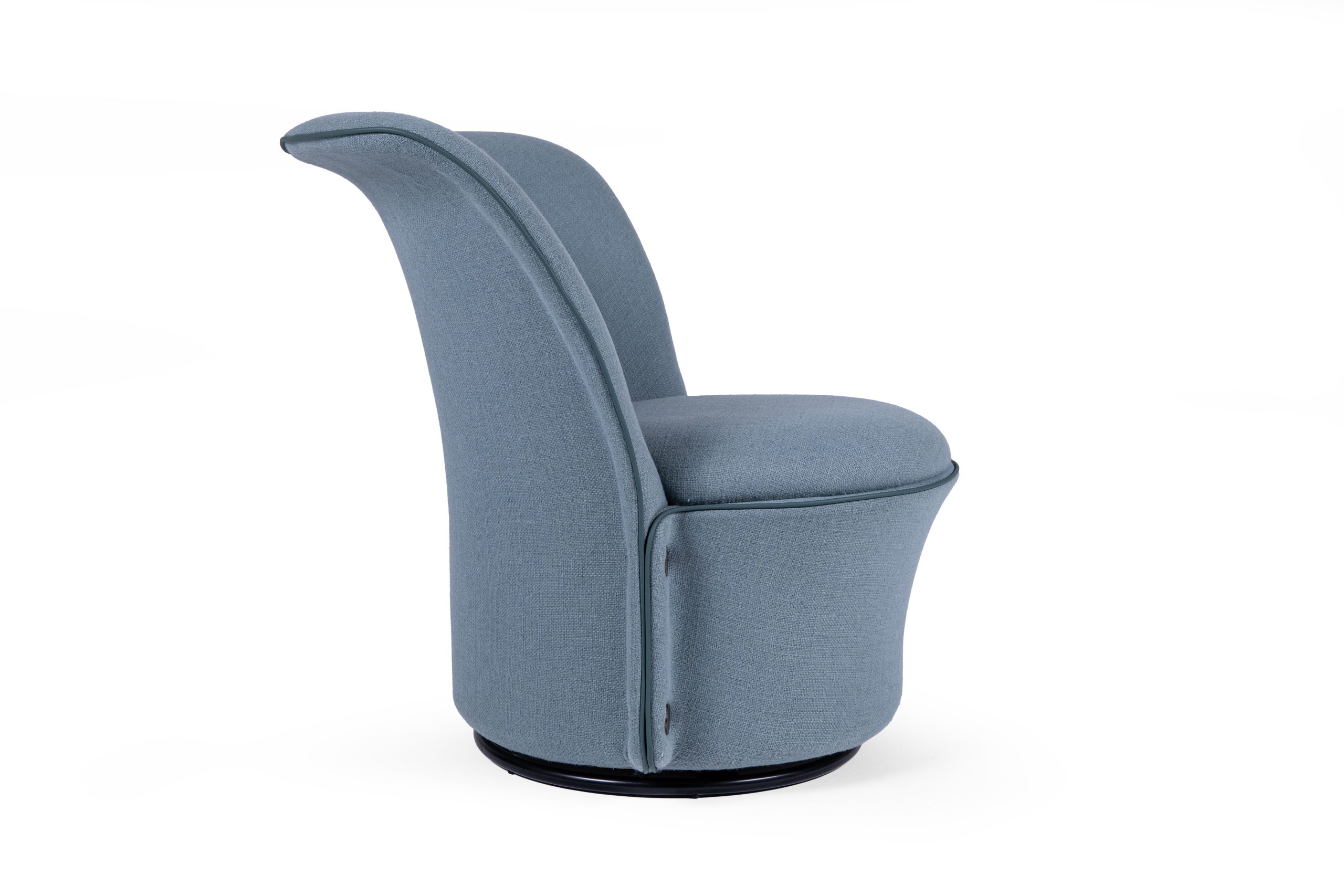 The design highlights are particularly prominent: The curved high backrest extends like an art sculpture, providing sufficient support for the head and back while becoming a visual focal point with its unique shape. The exquisite piped edging and metal button decorations on the side highlight the retro style in details. The bottom is equipped with a swivel base, allowing users to adjust the direction freely, adding convenience and fun to spatial interaction.
